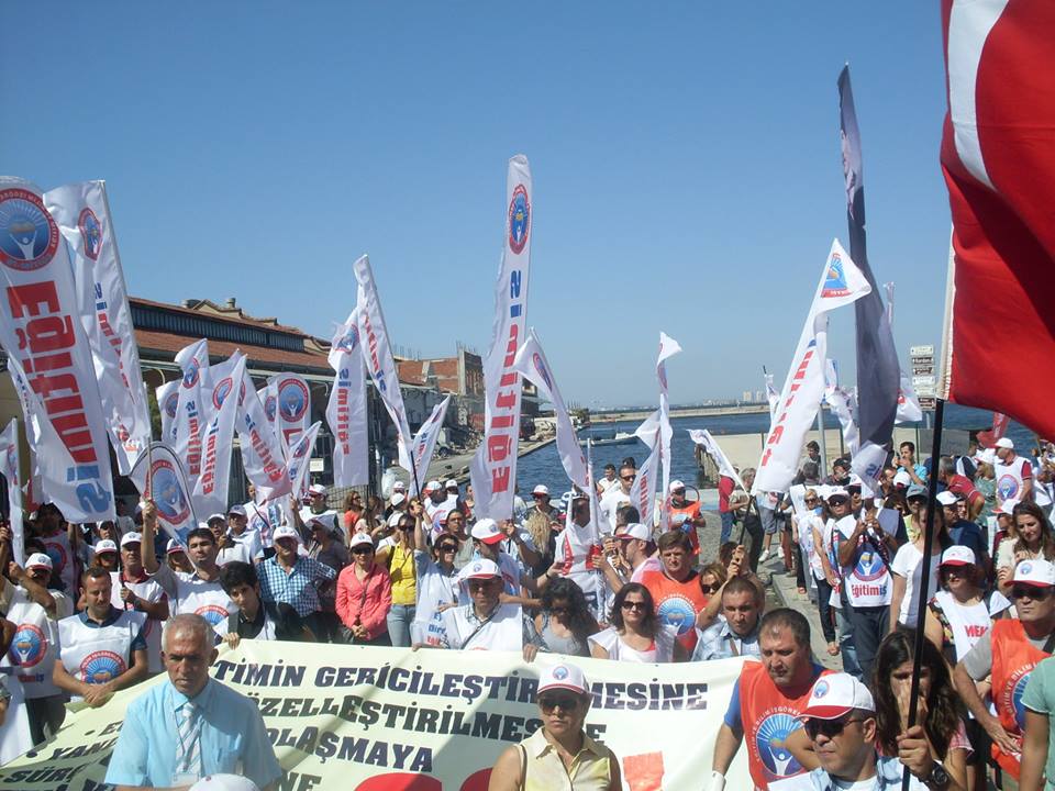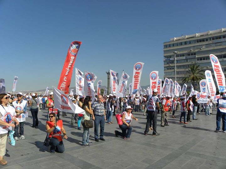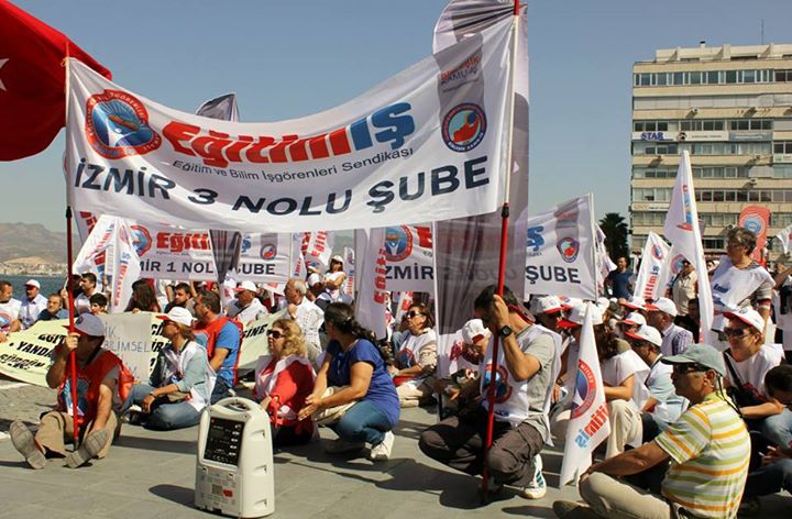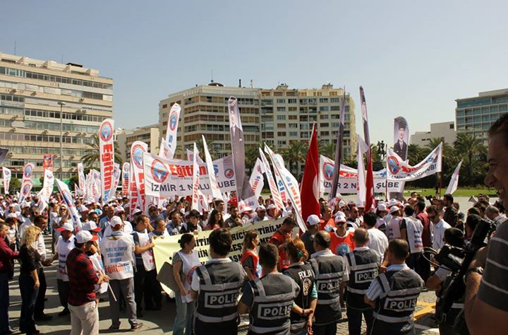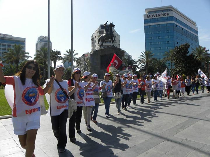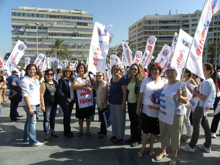 DEVAMI25/09/2014-Eğitim-İş İzmir Şube ve Temsilcilikleri, ulusal, kamusal, çağdaş, bilimsel, demokratik, laik eğitim hakkı için; siyasi iktidarın Cumhuriyet devrimlerine karşı ideolojik yapılanmasını, eğitimin özelleştirilmesini, yandaş öğretmen atamalarını, okullarımızın medreseleştirilerek eğitimin gericileştirilmesini protesto etmek için 24 Eylül Çarşamba günü iş bıraktı.